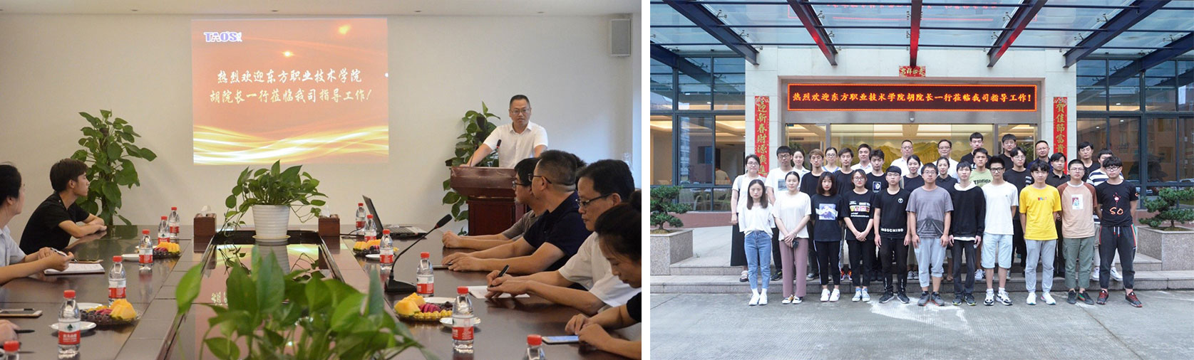 2019年7月15日下午,浙江东方职业技术学院院长胡新根一行莅临维琅电气旗下子公司浙江天时电器有限公司走访座谈,并对暑期实践队22名学生进行慰问工作。我司总经理吴仁洪携辅导老师团队进行了热情接待。会上,胡院长一行与学生代表亲切交流,了解实习情况,同时听取了我司对暑期实践队在工作、学习上的反馈意见及人才培养的建议。