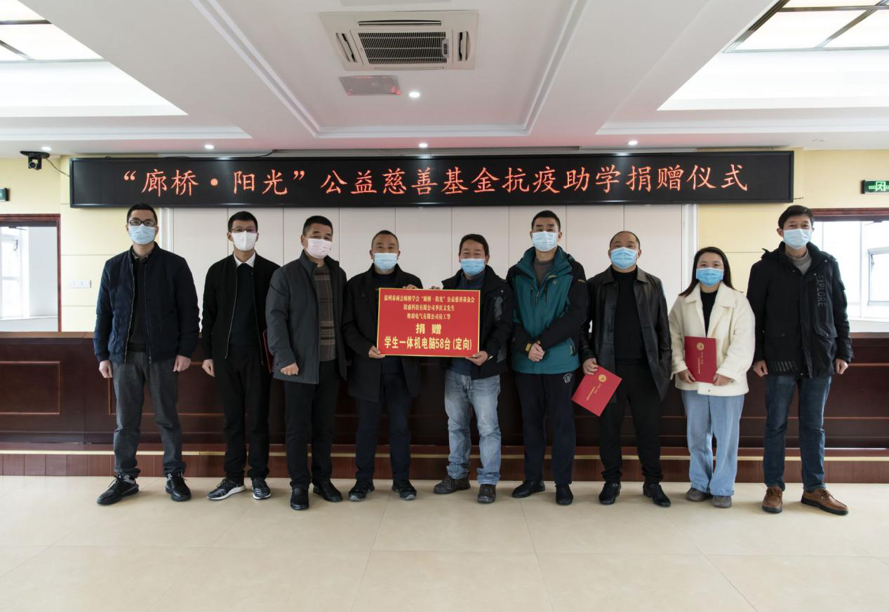 一次疫情、一场风雨、一个长假不期而至为了山区品学兼优的学生能有更好的条件完成网络学习,维琅电气有限公司积极响应由“廊桥·阳光”公益慈善基金会发起的抗疫助学倡议,在公司内部发起全员自愿捐款活动,募集到总计价值为30000元的一体机电脑20并为认捐的学生捐赠爱心口罩及贺卡。37日,浙江泰顺县慈善总会、教育局、团县委等部门的相关负责人出席了在县教育局举办的“春季抗疫助学 爱心电脑捐赠”交接仪式,维琅公司旗下核心企业浙江天时电器有限公司党支部书记陶青青作为爱心企业代表参加了本次活动。